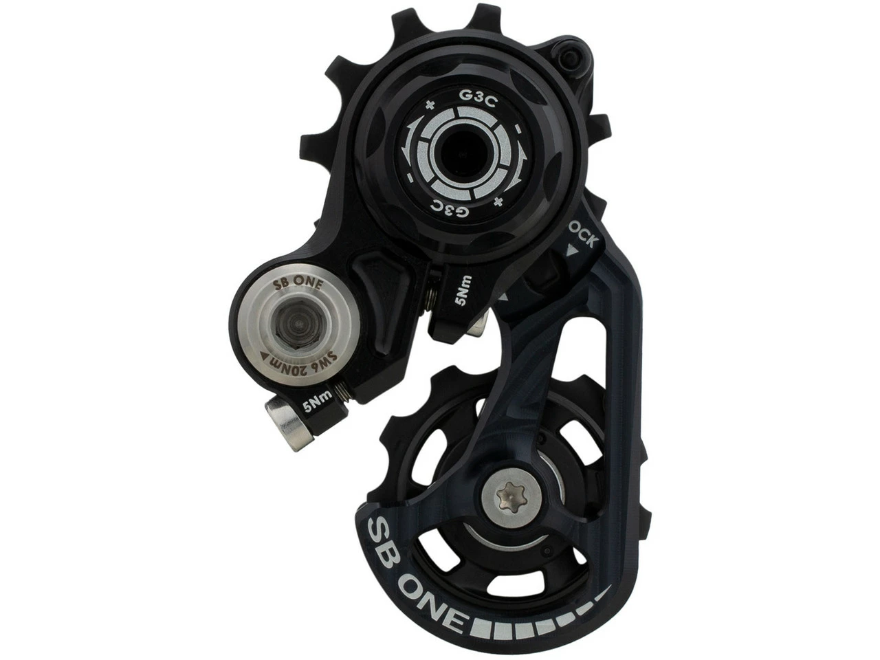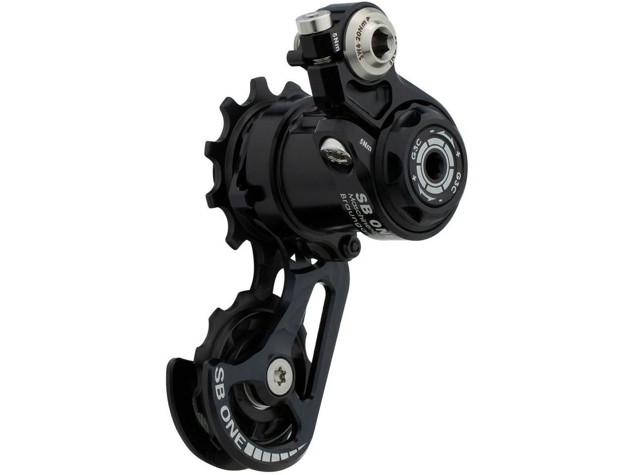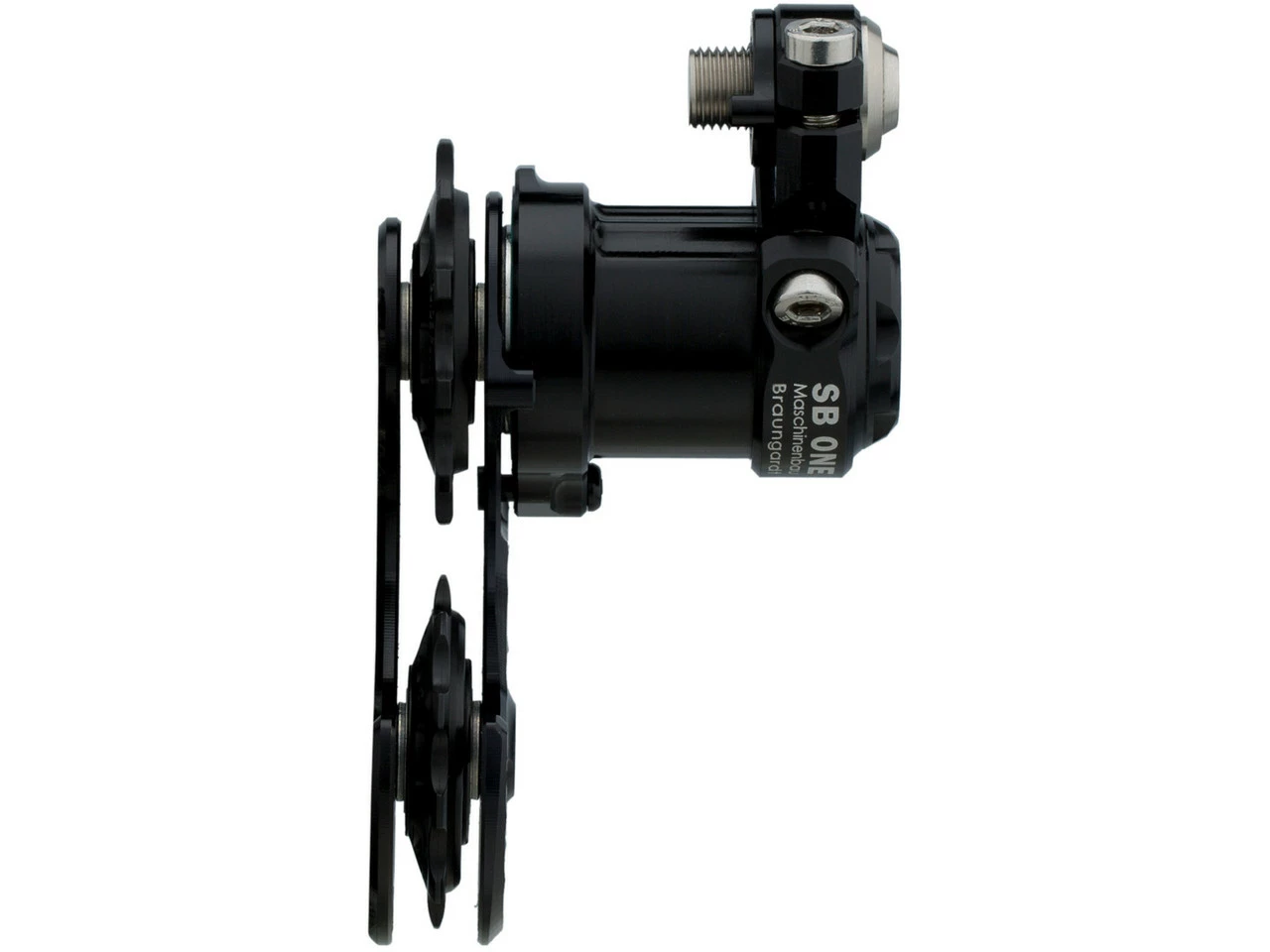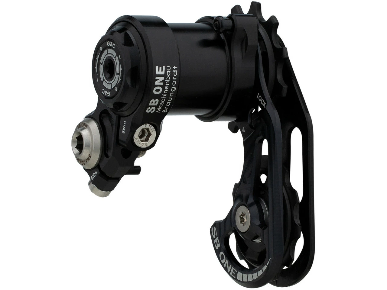 Technical Information:Application:DownhillMaterial:aluminium (7075)Damper/Clutch:continuously adjustableSprocket Sizes:12 – 17 teethChainline Adjustment:0 – 18 mm, continuousCompatibility:HG hubs, all 9-/10-/11-speed chainsFeatures:brute forceinfinitely variable chain wraplocking of the cage facilitates disassembly of the rear wheelalignment to sprocket infinitely adjustable up to 18 mmencapsulated tensioning system (torsion spring cannot become dirty and thus not stagnate)simple mounting on the derailleur hangerfor standard HG hubs and all 9/10/11-speed chainscompatible e.g. with Reverse Singlespeed-Kit or Gusset Doublesix sprocketsManufacturer Number:black:SBO-G3CDH-000Contents:1 x SB ONE DH G3C chain tensionernot incl. spacernot incl. sprockets