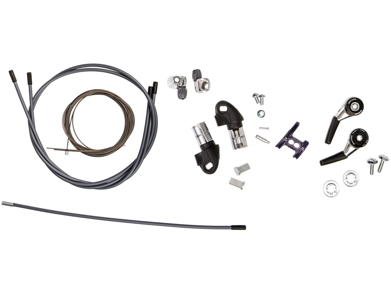 Contents:1 x pair Shimano Dura-Ace SL-BS79 shifters1 x pair Shimano SM-CS50 cable stops1 x Shimano cable, 2600Â mm1 x Shimano cable, 2000Â mm2 x Shimano SP41 (unsealed) 800Â mm cable housings1 x Shimano SP41 (sealed) 300Â mm cable housing