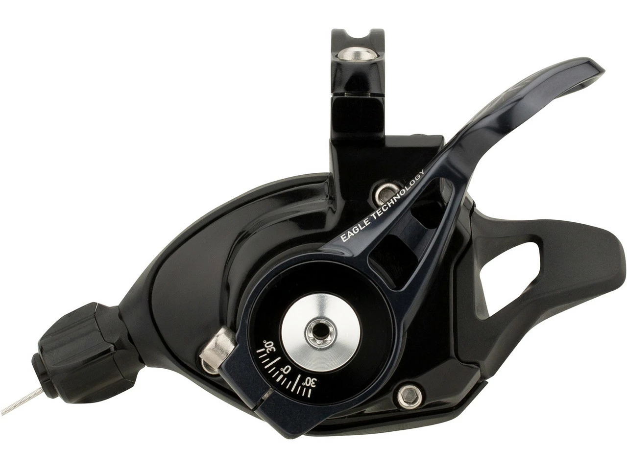 Specifications:Series:X01 EagleApplication:All Mountain, EnduroGearing:12-speedMount:clamp (closed), MatchmakerTechnical Information:Type:triggerBody Material:aluminium, compositeLever Material:AluminiumClamp Diameter:22.2 mmAdjustment Options:thumb lever positionCompatibility:Eagle cassettes with 10-50 teethEagle cassettes with 10-52 teethMatchMaker XFeatures:improved shifting feel thanks to sealed ball bearingsshift up to five gears at once to a larger sprocketforged aluminium lever for high resistanceprecise, immediate shifting operationstrigger can be variably mounted on clamp or Matchmaker X thanks to Multi-Positionintuitive operating with the thumbcolour-coordinated with Eagle componentsTechnology:X-Actuation™: